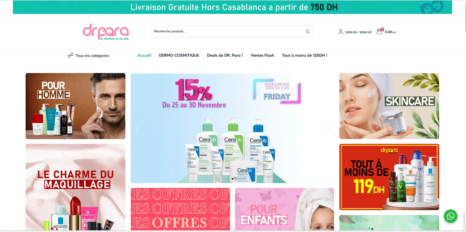 DrPara propose une large gamme de produits de parapharmacie. Le site, optimisé avec Elementor, garantit une navigation fluide, des temps de chargement rapides et une expérience d’achat sécurisée.